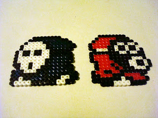 Since I've finally settled into a place to live I figure it is time to start posting regularly or more likely semi-regularly. So following are some Perler forms I've made over the past year or two. There aren't a whole lot though they are characters I like and manged to find cool sprites of. So here they are! In no particular order: Babomb, Ninjat, Kirby (slipping), Luigi, Mario, Megaman, a Bloop, a Zaku head, a Shyguy and a Sniffit. And yes, I am still thinking of making those coasters... just need more votes to decide on a final set of images.